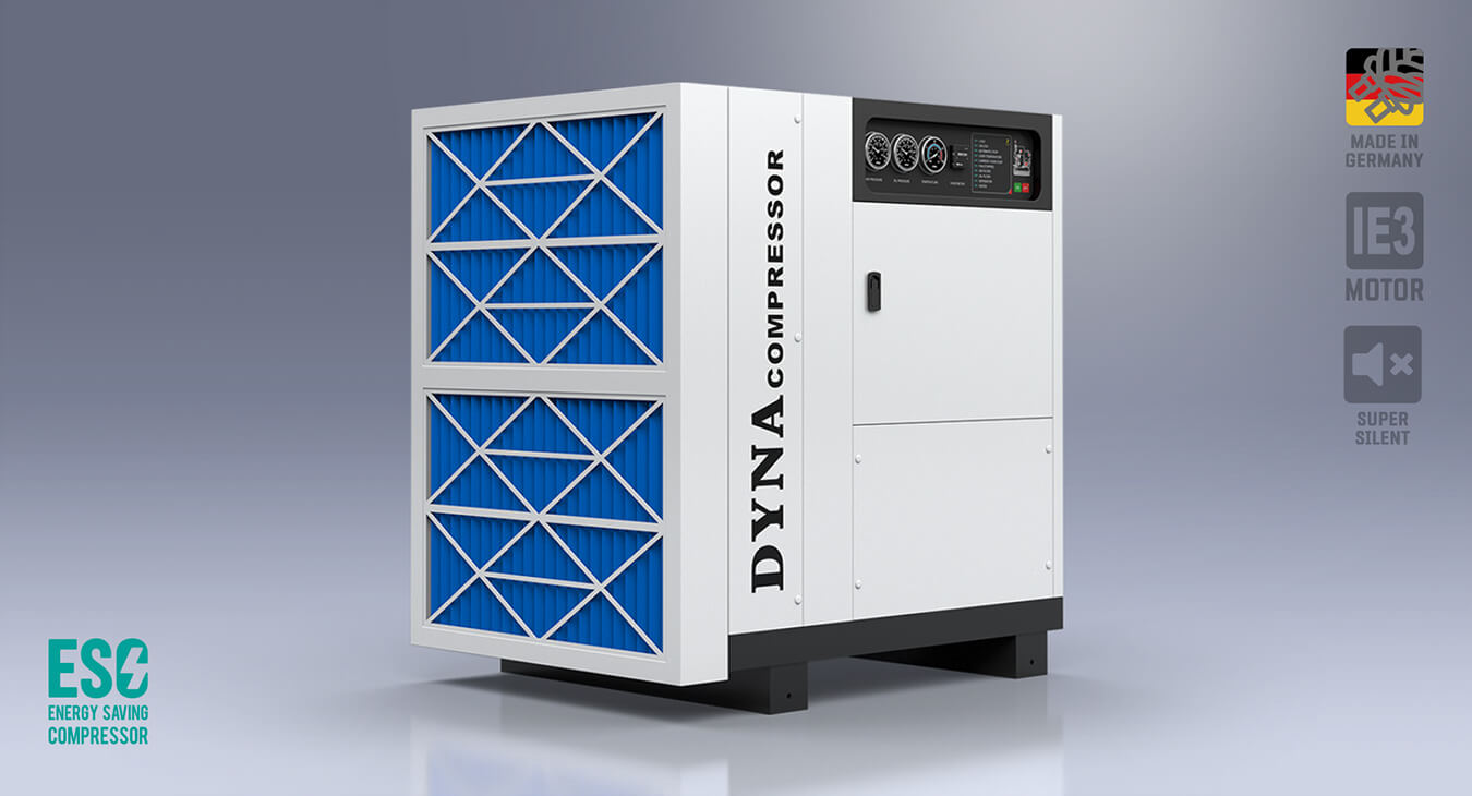- 粉塵對空壓機的危害是最嚴重的,DYNA 研發團隊,設計了前置除塵過濾網,粉塵捕集率達 90% 以上,有效將粉塵隔阻於機外,可使機台運轉順暢及延長設備使用壽命。